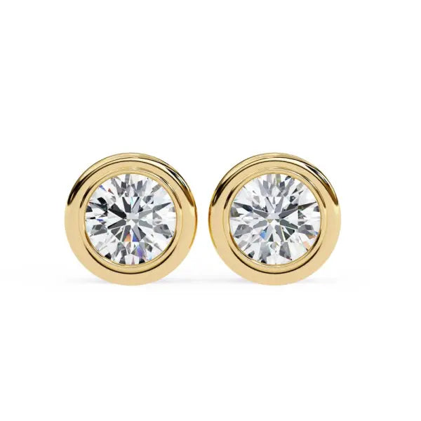 Round Bezel Set Solitaire Stud Earrings - 10k
